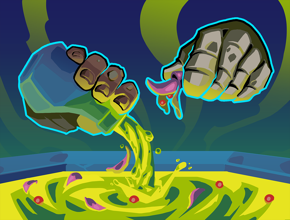 Procure a random potion. Exhaust.